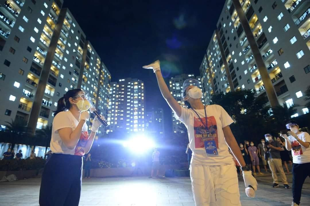 “Lần đầu tiên có một đêm diễn không ánh sáng rực rỡ, không âm thanh hoành tráng, không áo quần lộng lẫy… Một buổi diễn 60 phút đầy cảm xúc với khán giả là hàng trăm nhân viên y tế và hơn hàng ngàn bệnh nhân F0”, MC Quỳnh Hoa cho biết.