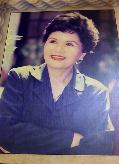Nghệ sĩ cũng tự tay chọn di ảnh cho mình. Đó là một tấm hình do nhiếp ảnh gia Minh Hoàng - một người con nuôi khác của bà chụp cách đây đã lâu. Trên hình, bà mặc chiếc áo bà ba tím, đeo khăn rằn đậm chất Nam bộ, miệng cười hồn hậu.