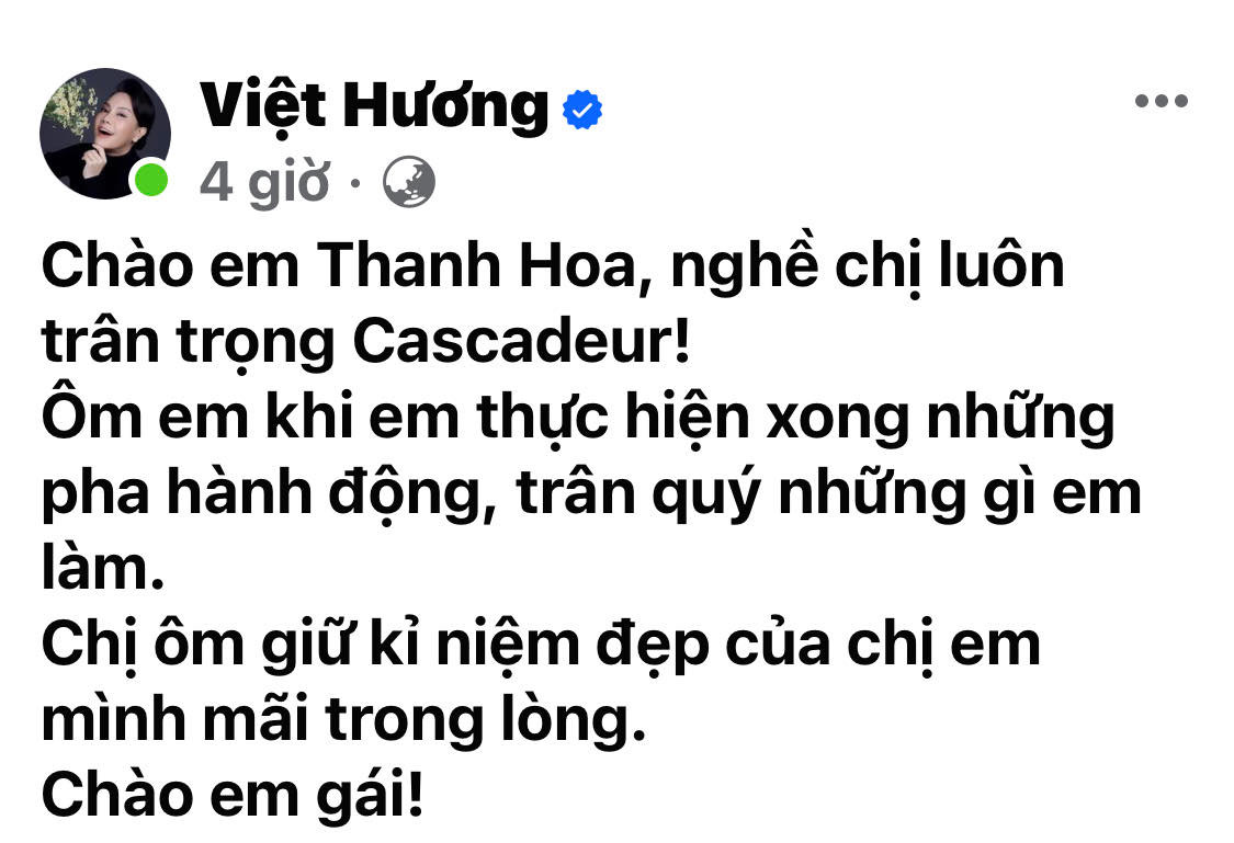 Nhiều đồng nghiệp bày tỏ sự tiếc thương cho sự ra đi đột ngột của diễn viên Thanh Hoa. Trên Facebook cá nhân, Trác Thúy Miêu bày tỏ sự bàng hoàng và tiếc thương cho đồng nghiệp. Diễn viên Việt Hương ngậm ngùi chia sẻ: "Chị ôm giữ kỷ niệm đẹp của chị em mình mãi trong lòng". Nam diễn viên Hứa Minh Đạt cũng bộc bạch: "Giờ phải chào tạm biệt chị rồi, nữ diễn viên hành động - cascadeur hiền lành, dễ thương và đầy nhiệt huyết đam mê điện ảnh".