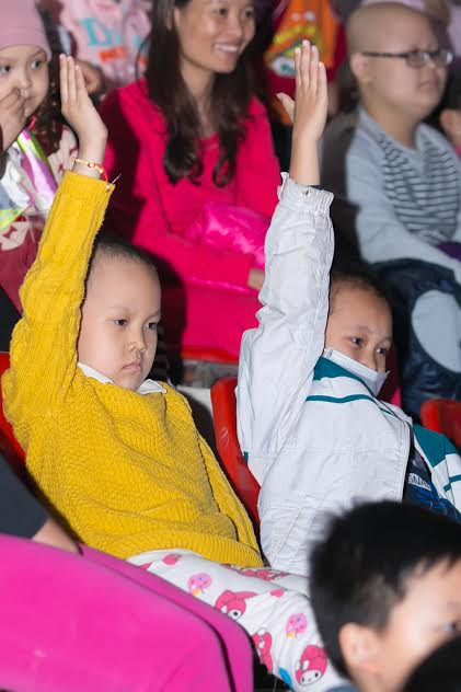 Nhìn các em còn nhỏ tuổi, em thì đầu đã không còn sợi tóc sau những đợt hoá trị, em thì phải có bố mẹ dìu, em phải bịt khẩu trang cả buổi xem để chống ô nhiễm… nhiều khán giả thấy nhói lòng.