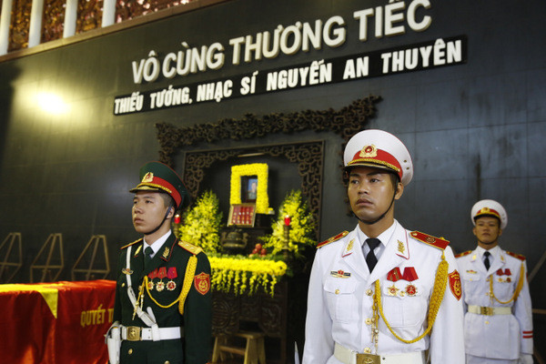 Lễ tang nhạc sĩ An Thuyên do đồng chí Chủ nhiệm Tổng cục Chính trị - Bộ Quốc phòng làm trưởng ban, diễn ra theo nghi thức sỹ quan cấp Tướng trong Quân đội nhân dân Việt Nam.