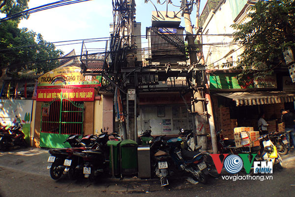 Trạm tin phường Hàng Buồm được "vây kín" bởi xe máy và bốt điện cao thế