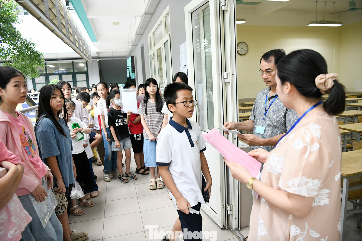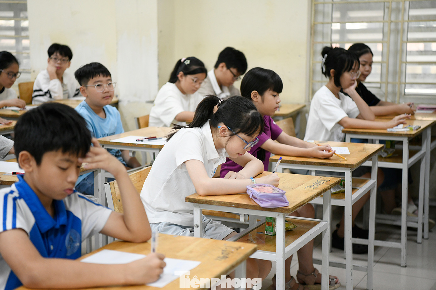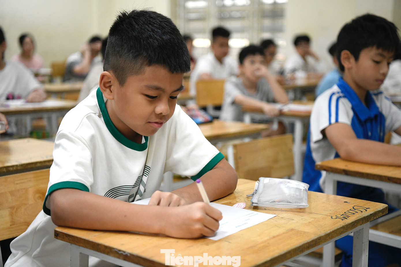 | Hàng nghìn học sinh Hà Nội làm bài thi đánh giá năng lực vào lớp 6 ở trường THCS& THPT Nguyễn Tất Thành. Ảnh: Như Ý |