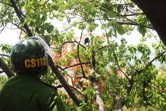 Khoảng 9 giờ 45 phút sáng nay (10/7), lực lượng cảnh sát 113, công an tỉnh Khánh Hòa nhận được tin báo tại khu vực cầu vượt đường Nguyễn Đình Chiểu, gần danh thắng Hòn Chồng có một cô gái biểu hiện ngáo đá, phê ma tuy đang leo lên cây la hét.