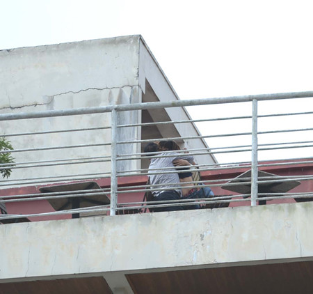 Dù được thuyết phục nhưng cô gái vẫn cố thủ bên ngoài lan can