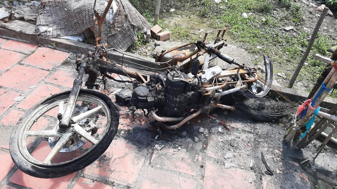 Ông Mến cho biết, trước đó, ông đi ruộng về dựng xe trước hiên chứ không dẫn vào nhà, để sáng mai đi làm sớm. Đến khoảng 2 giờ ngày 29/5, phát hiện cháy ở chỗ chiếc xe, gần đó có một can màu trắng loại 20 lít nghi đựng xăng cùng một cây rọi (cây dùng để mồi lửa), một đầu cây rọi có đoạn dây chì dài khoảng 20cm, đầu sợi dây chì có một cục bông gòn to bằng cái cốc uống rượu của ai đó bỏ lại (những vật này đã được công an thu giữ).