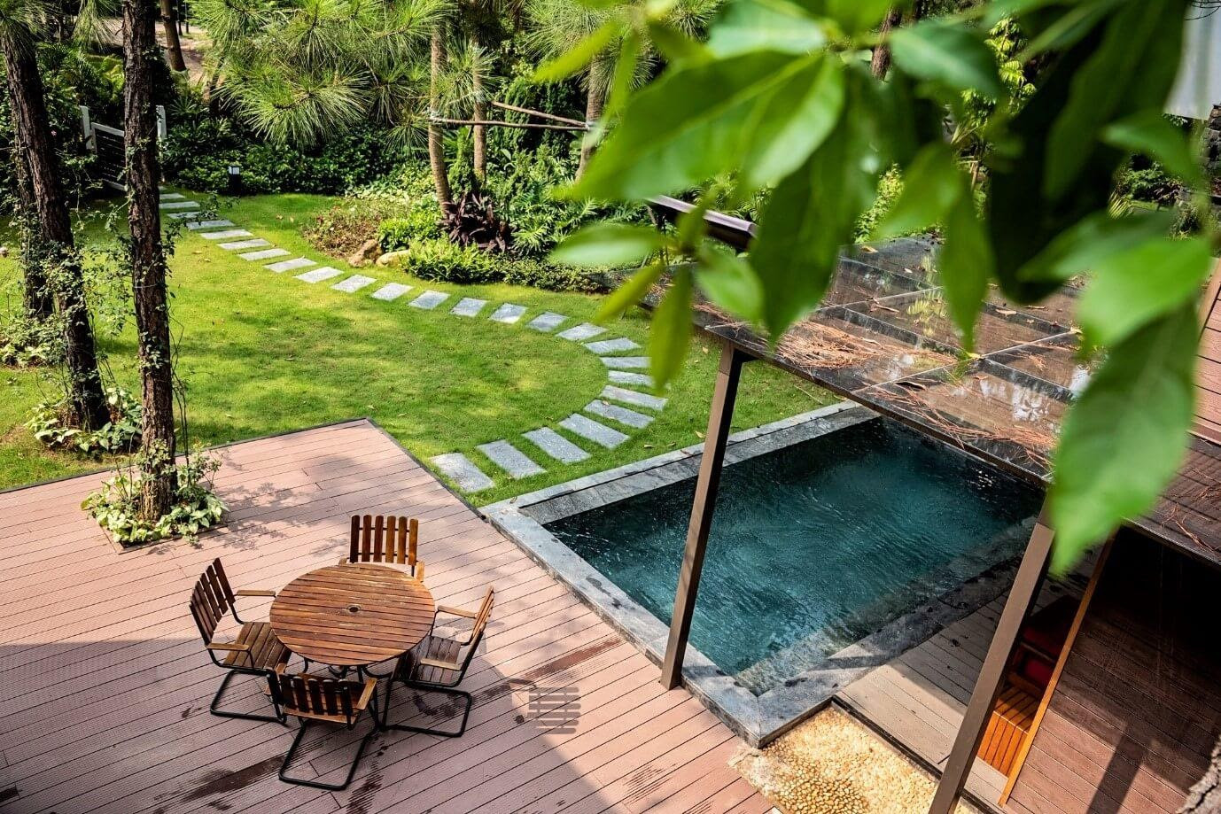 Nơi miền xanh Đại Lải, bạn hoàn toàn có thể tìm được không gian dành cho riêng mình, từ những phút giây vui đùa bên bể bơi riêng trong biệt thự cho đến cảm giác thư thái ngả lưng đọc sách giữa khu vườn rực rỡ. Từ phòng khách, phòng bếp tới phòng ngủ đều được trang bị những tiện ích hiện đại và dịch vụ tận tình, mang đến trải nghiệm trọn vẹn và an nhiên như chính ngôi nhà quen thuộc vậy.