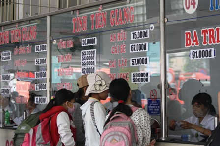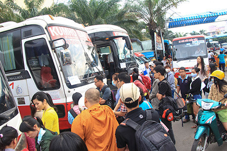 Trongkhi đó, lượng khách tại bến xe miền Đông, miền Tây cũng khá ổn định, không xảyra tình trạng cháy vé. Cũng như mọi năm, người dân về quê nghỉ dưỡng phải chịuđóng tiền phụ thu 30 - 40% giá vé.