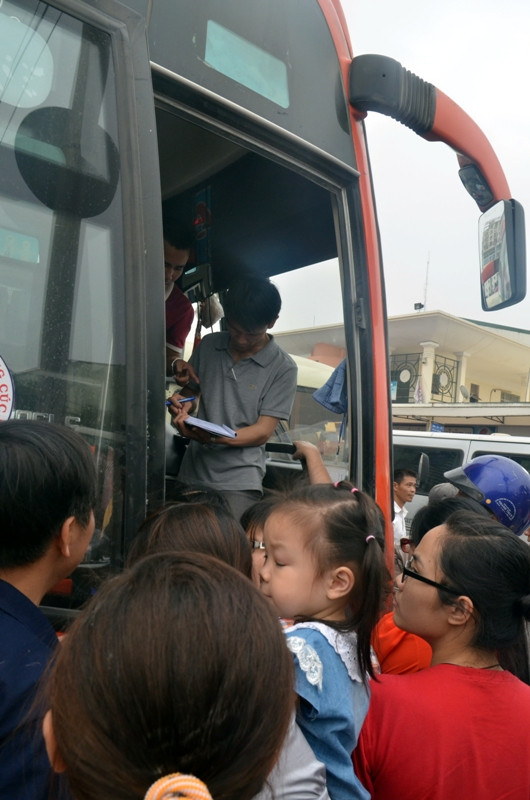 Nhiều nhà xe lấy cả sổ ra ghi, điểm tên những người đã mua vé để xếp chỗ.