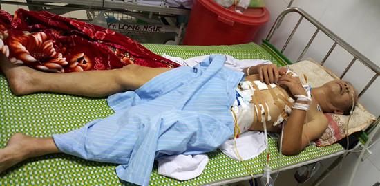 Từ 8h sáng 29/5, ê kíp gần 10 y bác sĩ liên khoa đã tiến hành phẫu thuật trong 2 giờ đồng hồ đã hoàn thành ca mổ để dẫn lưu màng phổi; khâu cơ hoành; cầm máu gan; khâu ruột non.
