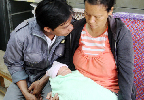 Làm việc công an, chồng Trâm khai, khoảng 10h sáng 9/1 bỗng thấy Trâm bồng đứa bé đỏ hỏn về nhà. Gia đình ngạc nhiên hỏi con ai đây thì Trâm trả lời: "Con tụi mình đó, tối qua em đến Từ Dũ khám rồi đẻ ở đó luôn". Thấy đứa bé là con trai, không phải gái như siêu âm, Trâm bảo: "Tại lúc chụp hình con nó ép giò lại nên không thấy...".