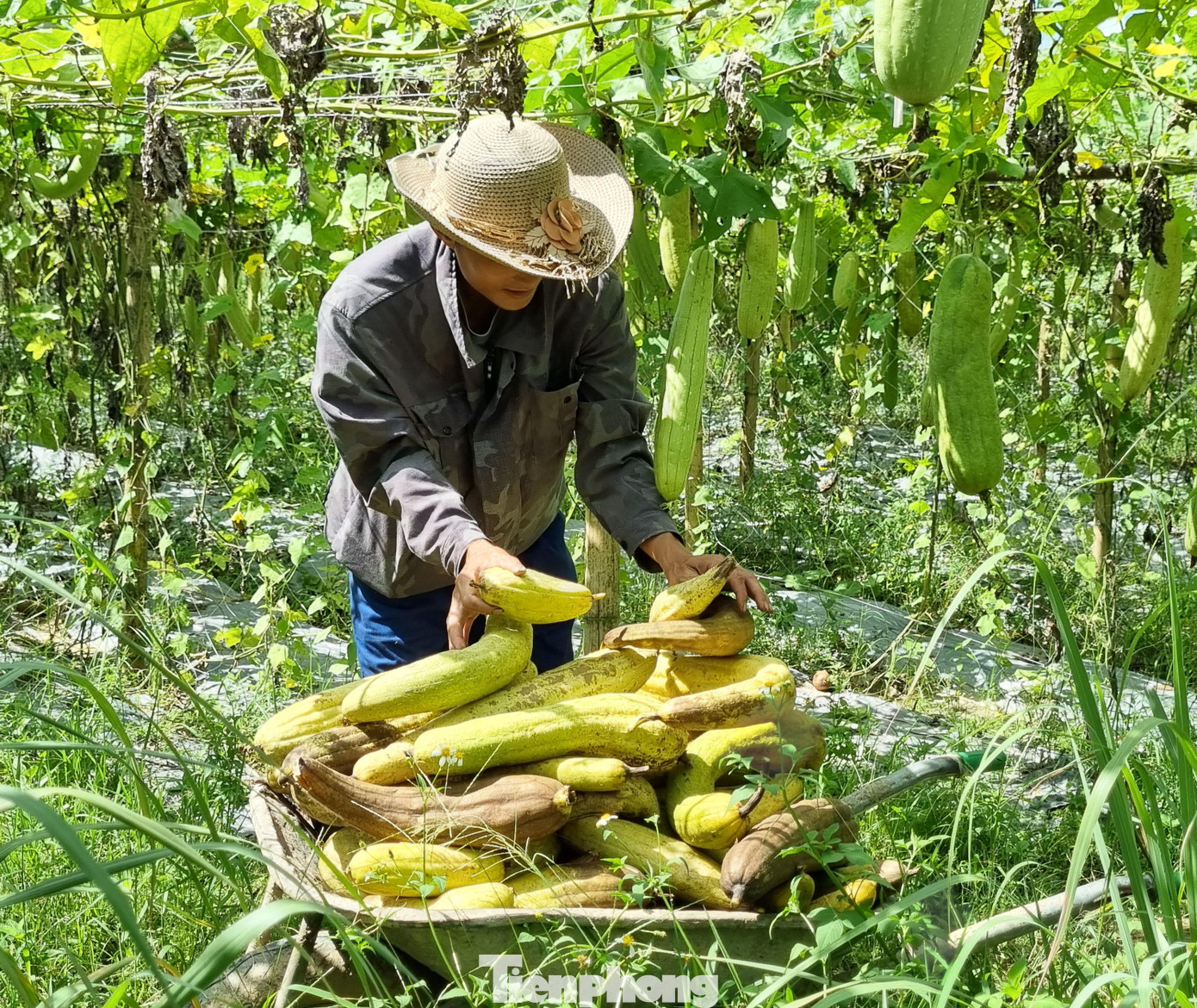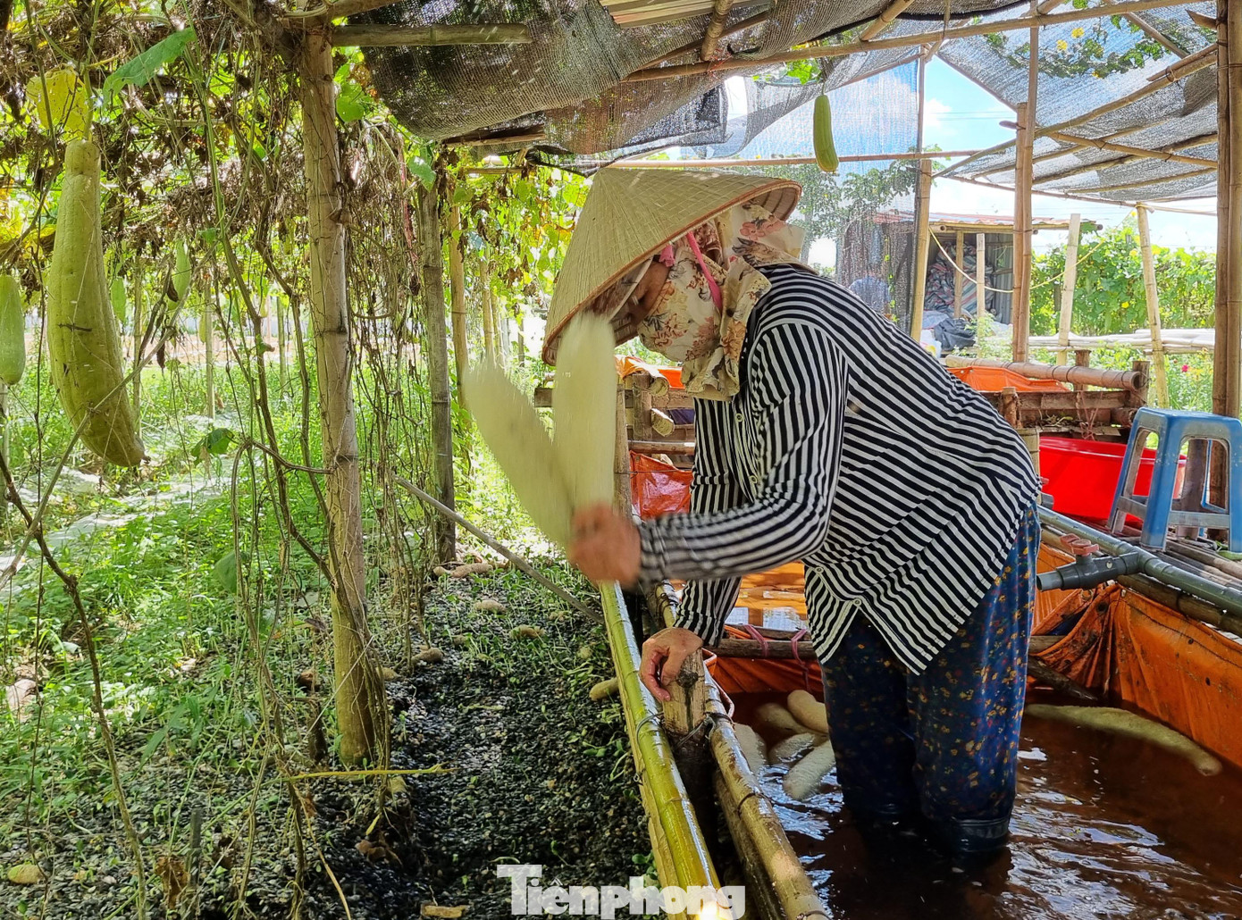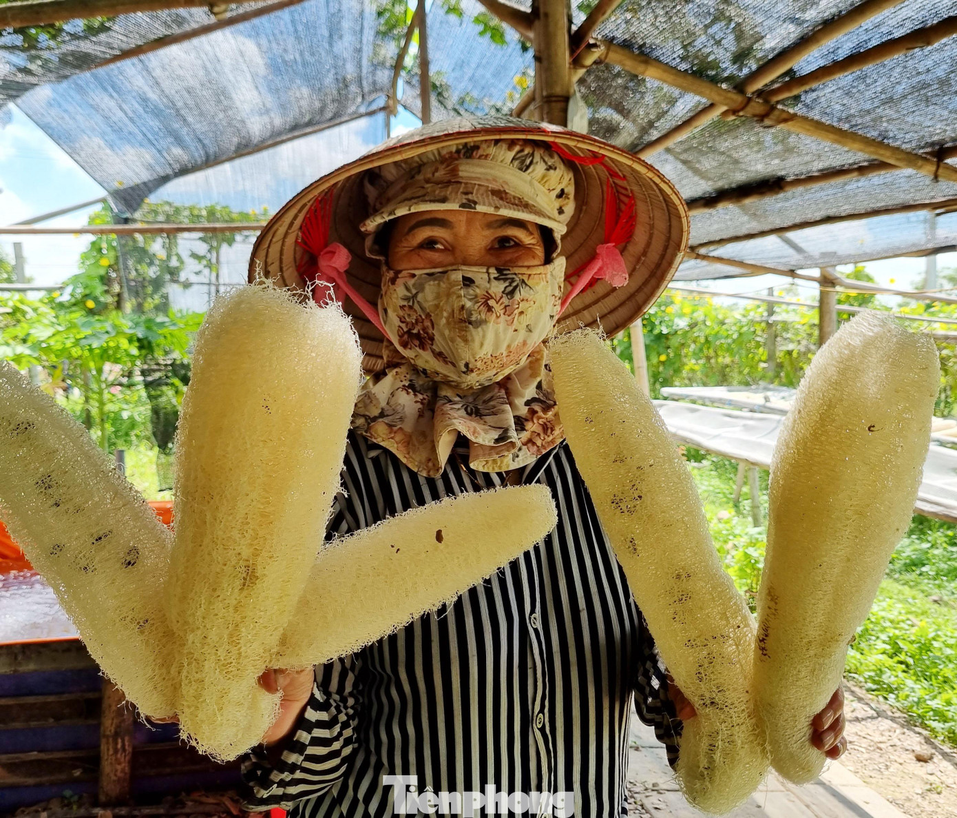 | Vì vậy, năm 2019, anh quyết định nghỉ việc, về khởi nghiệp làm nông nghiệp. Điều này khiến người trong gia đình phản đối kịch liệt. Hàng xóm, bạn bè thì bảo là “điên, hấp” vì đang yên, đang lành làm việc ở ngân hàng lớn, lương tháng 30 đến 40 triệu đồng lại bỏ về đi trồng mướp lấy xơ, tiềm ẩn nhiều rủi ro. - Ảnh: Công nhân kiểm tra độ già và chất lượng của mướp. |