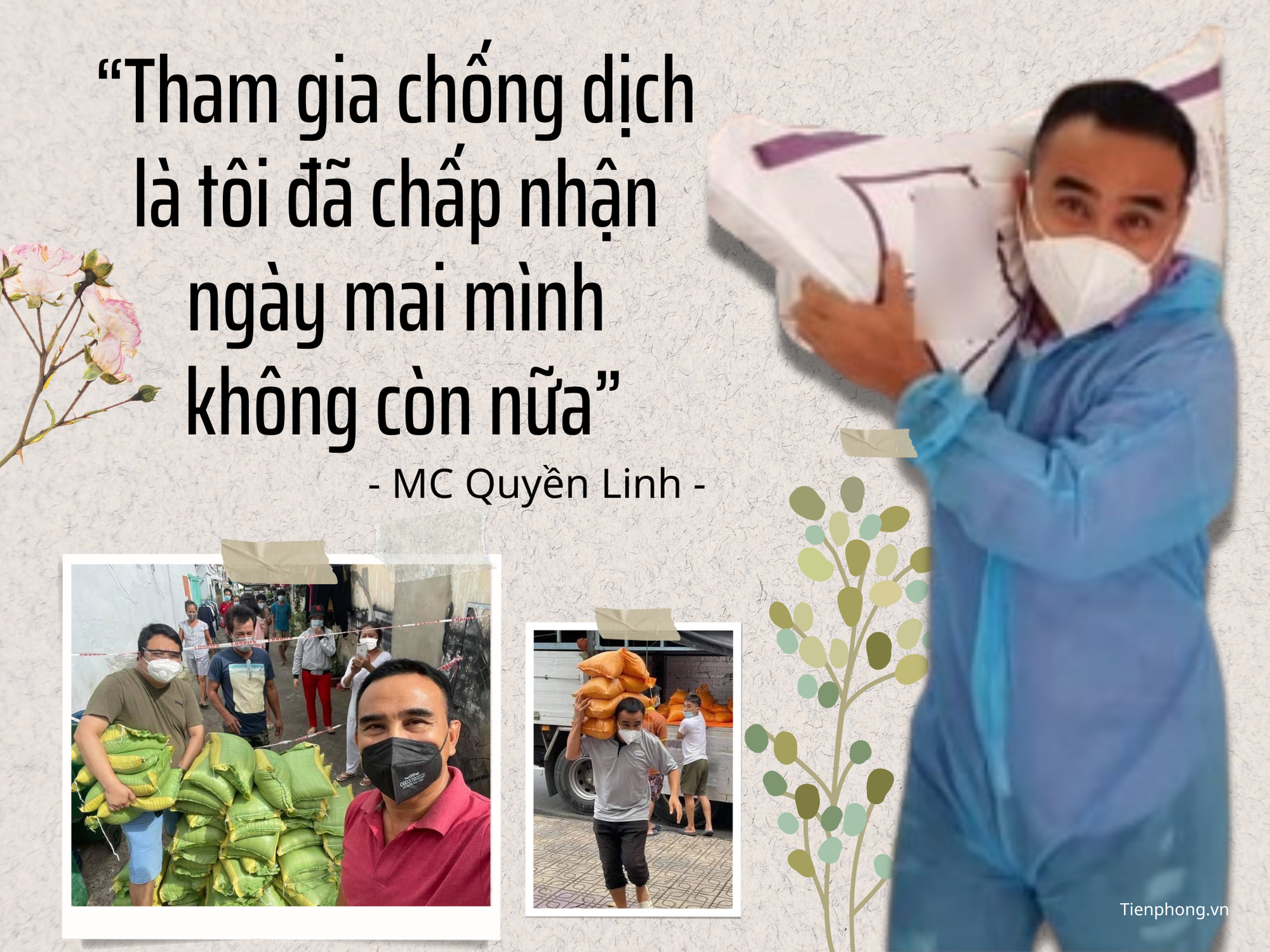 Kể từ khi TP HCM "bệnh nặng", MC Quyền Linh là một trong những nghệ sĩ tiên phong trong công tác kêu gọi quyên góp và ủng hộ quỹ vắc-xin. Anh không quản nguy hiểm lăn xả vào tâm dịch, chuẩn bị lương thực thực phẩm để đưa tới người dân gặp khốn khó.