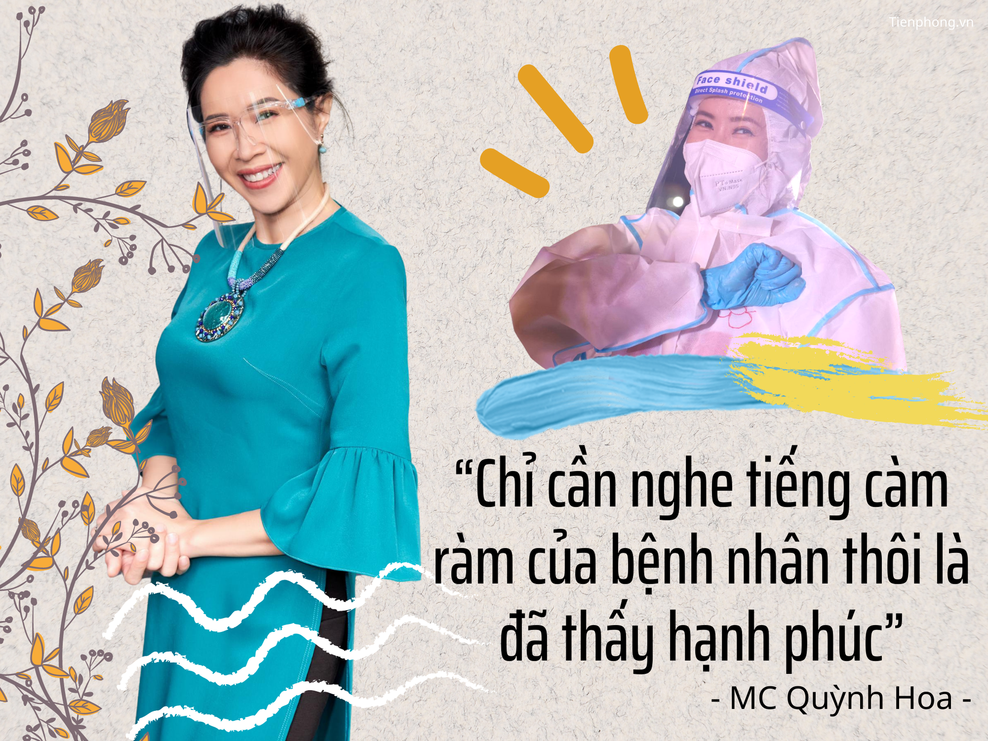 Trong thời gian tham gia vào lực lượng tuyến đầu chống dịch, MC Quỳnh Hoa cùng các đồng đội của mình là các tình nguyện viên nghệ sĩ của Nhà văn hóa Thanh Niên TP HCM đã mang lời ca tiếng hát đến gần 30 bệnh viện và khu cách ly để “phục vụ”, tiếp thêm sức mạnh tinh thần cho các lực lượng tuyến đầu và hàng nghìn bệnh nhân.
