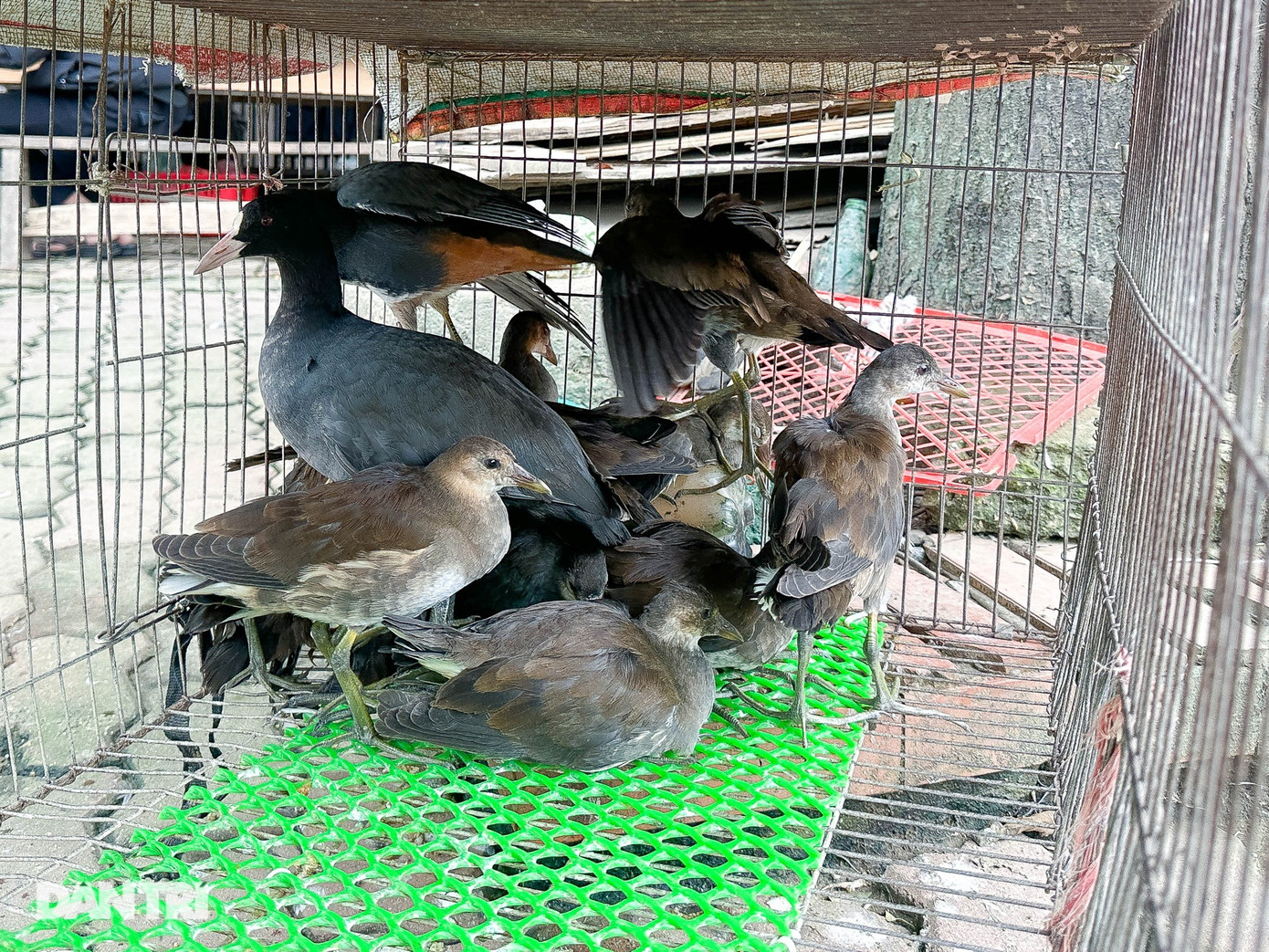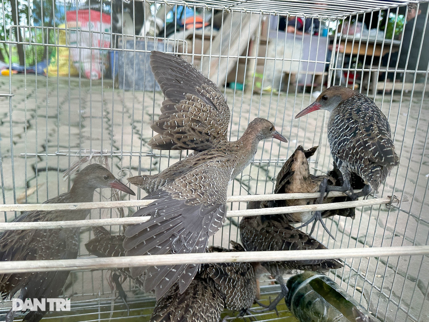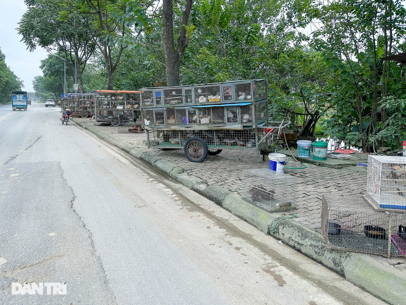 Theo ghi nhận của phóng viên Dân trí, tại đây bày bán đủ loại chim trời, kể cả loại hiếm có như cò hương, chim diệc, chim giang sen, vạc... Cả trăm lồng nhốt chim, vịt, gà bày la liệt trên vỉa hè, bốc mùi tanh hôi khó chịu. Mỗi khi khách dừng xe để mua hàng, các loại chim trong lồng quẫy đạp tán loạn.