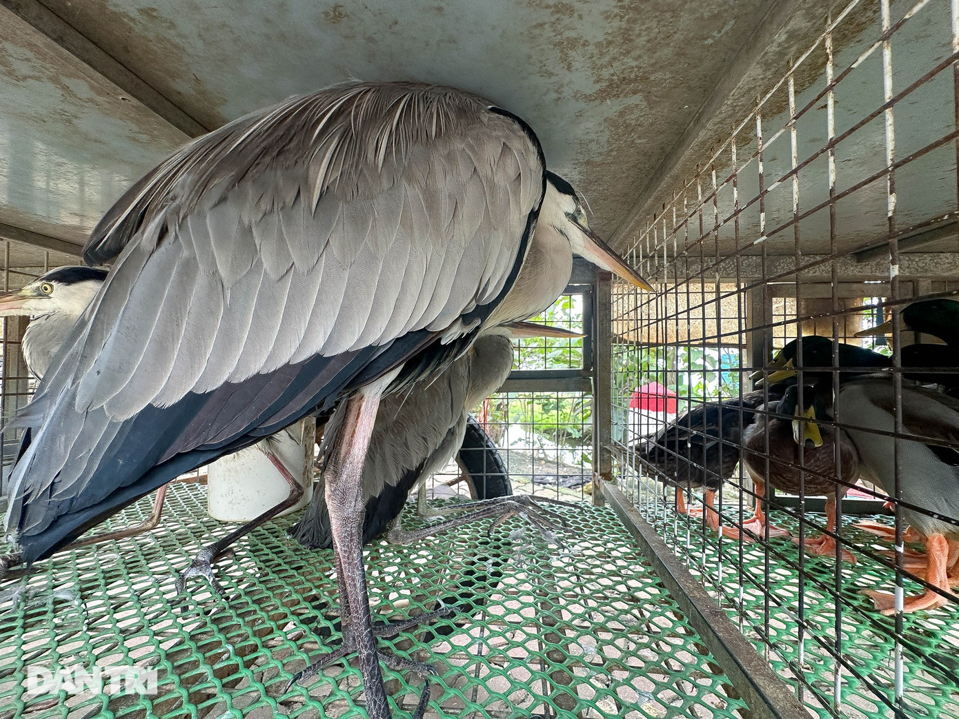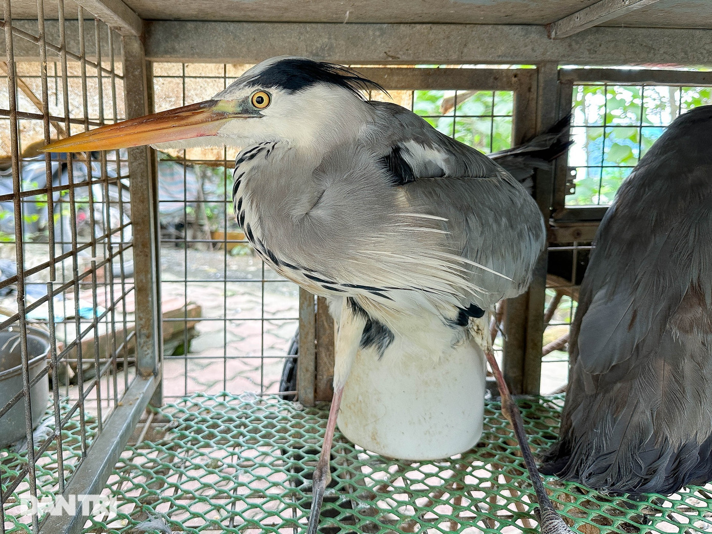 Trong hình là một chú chim diệc xanh khoảng 1,2kg, được tiểu thương ra giá 700.000 đồng. "Chim này quý hiếm, không phải lúc nào cũng có nên giá cao. Hôm trước tôi tìm được chục con, có khách nhanh tay mua cả, giá tầm 650.000 đồng/con", tiểu thương này cho biết.
