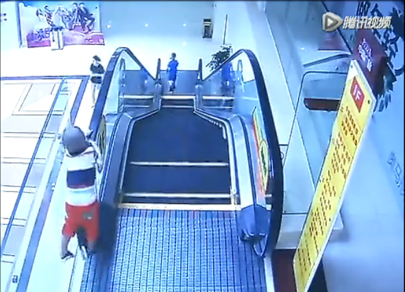 Video công bố chiều 26/5 cho thấy, hai đứa trẻ chạy đuổi nhau xung quanh các cửa hàng tại trung tâm mua sắm Đông Quan mà không có sự giám sát của người lớn. Cậu bé lớn hơn chừng 7-8 tuổi và là anh họ cậu bé nhỏ tuổi hơn được xác định là Jian Jian (3 tuổi).
