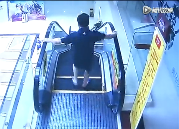 Cảnh quay khác cho thấy anh họ của Jian đã bước vào thang cuốn và đi xuống phía dưới, trong khi Jian tiến đến cầu thang và do dự bước xuống. Tuy nhiên, do sợ sệt cậu bé đã nắm vào tay vịn bên trái thang cuốn và toàn bộ người Jian bị nâng lên trên vành đai đang chuyển động.