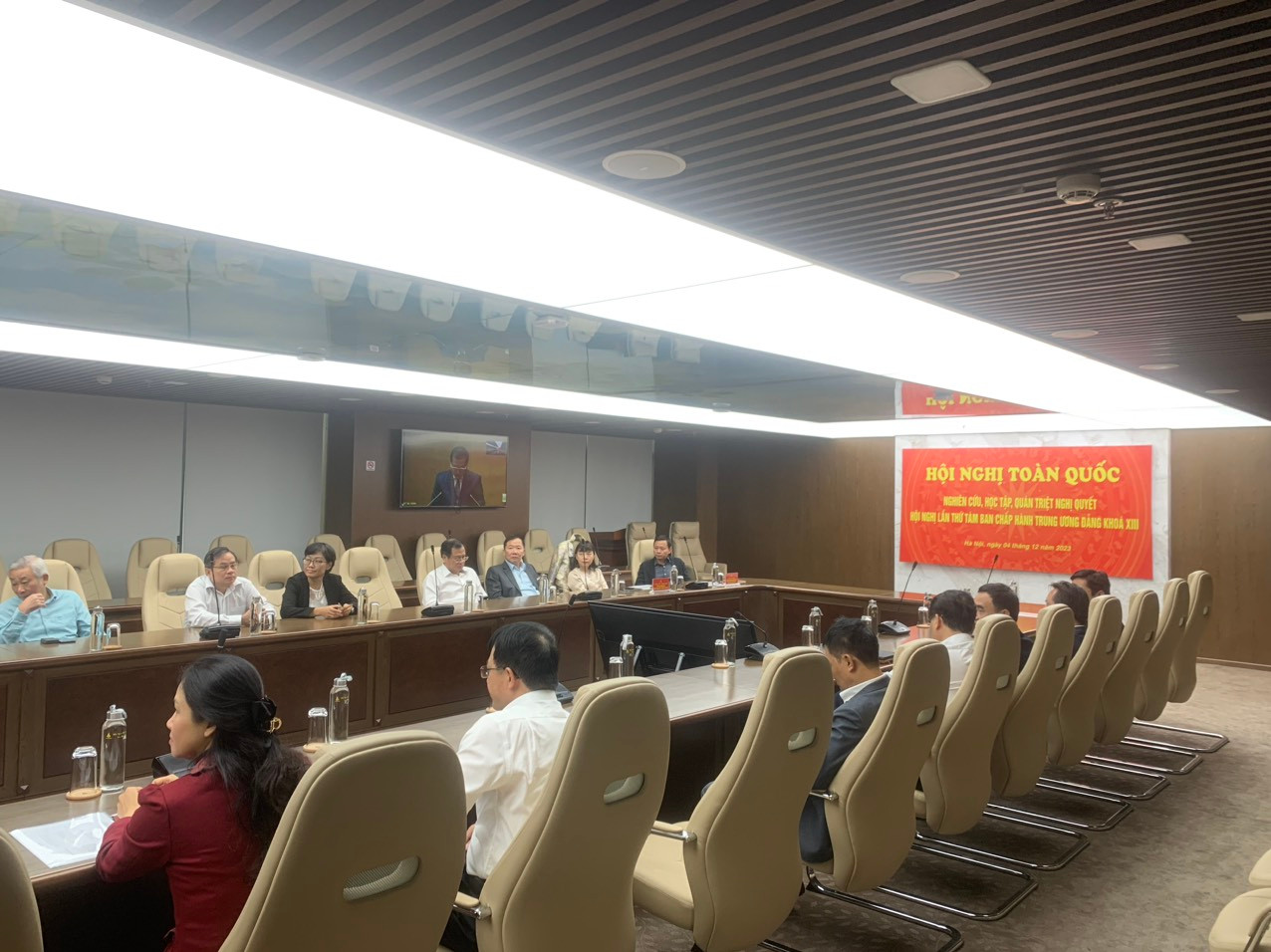 Dự hội nghị tại điểm cầu trụ sở chính có đồng chí Hồ Lê Nghĩa – Uỷ viên Ban chấp hành Đảng bộ Khối, Bí thư Đảng uỷ, Chủ tịch HĐTV Tổng công ty; đồng chí Trần Thị Hoàng Mai- Phó Bí thư Thường trực Đảng uỷ Tổng Công ty; đồng chí Hà Quang Hoà- Phó Bí thư Đảng uỷ, Thành viên HĐTV, Tổng Giám đốc Tổng Công ty và các đồng chí Ủy viên Ban Thường vụ, Ban Chấp hành Đảng bộ, Thành viên HĐTV, Ban Tổng giám đốc, Ủy viên Ủy ban Kiểm tra Đảng ủy, Trưởng, Phó các Ban chuyên môn/Văn phòng Tổng công ty, Công đoàn, Đoàn Thanh niên Tổng công ty.