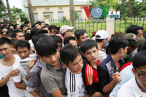 Từ sáng sớm, người hâm mộ đã xếp hàng dài hàng trăm mét để mong chờ mua được tấm vé xem U19 thi đấu