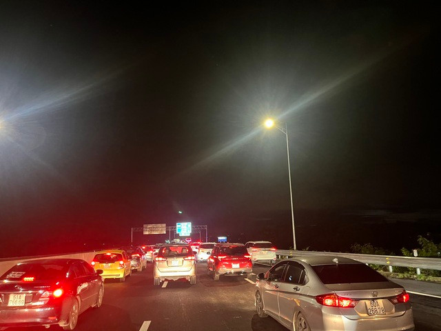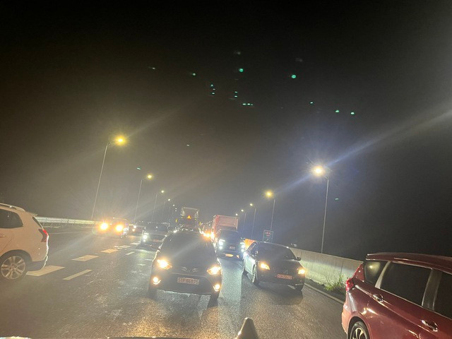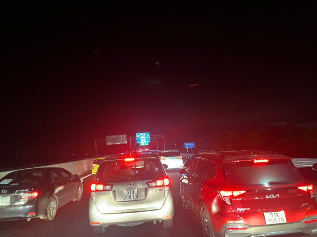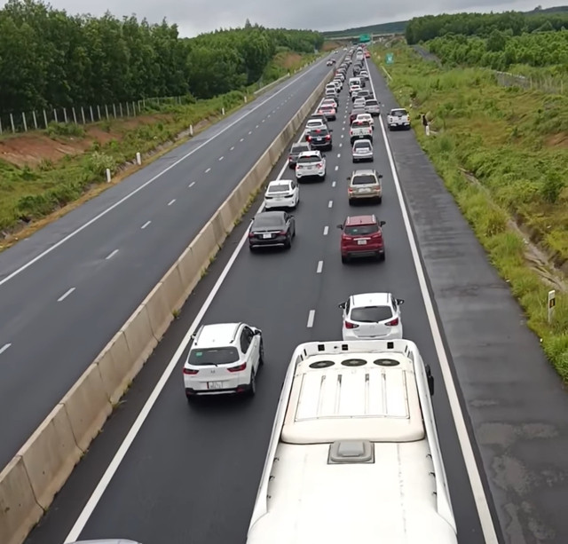 Để hạn chế kẹt xe, các tổ công tác phải phân luồng từ xa, nhiều lần đóng, mở liên tục tại các nhánh rẽ vào cao tốc. Trên cao tốc đoạn qua cầu Long Thành đang ùn tắc, lượng phương tiện đông, di chuyển chậm (khoảng 8km) hướng Đồng Nai - TPHCM.