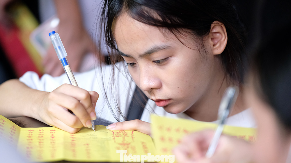 Nhiều bạn trẻ tranh thủ xin chữ mong được đỗ đạt.