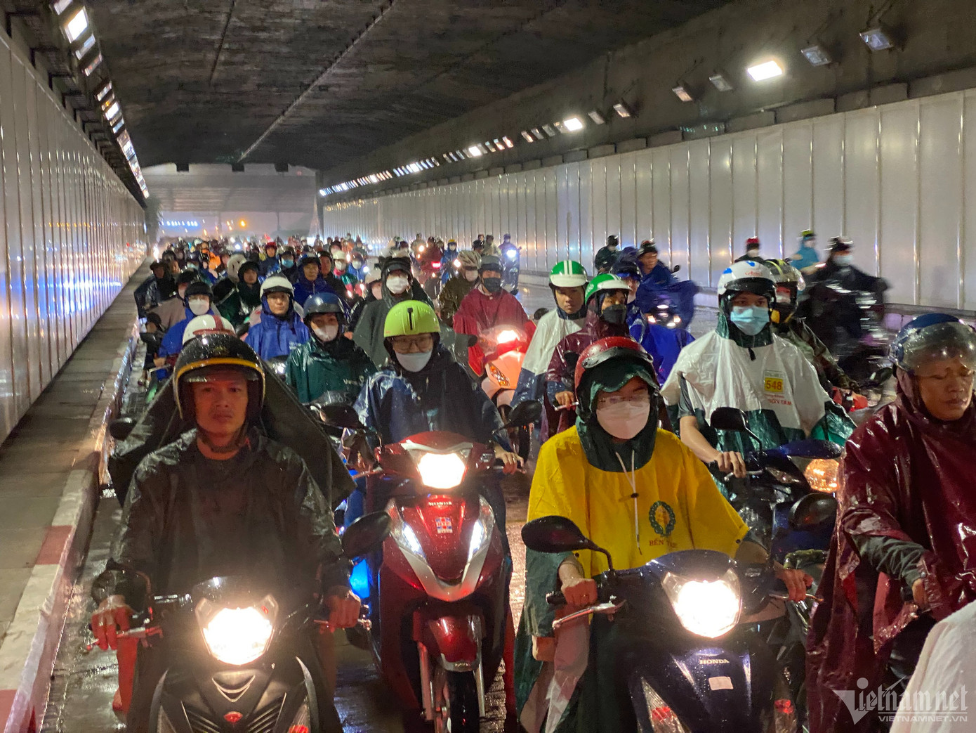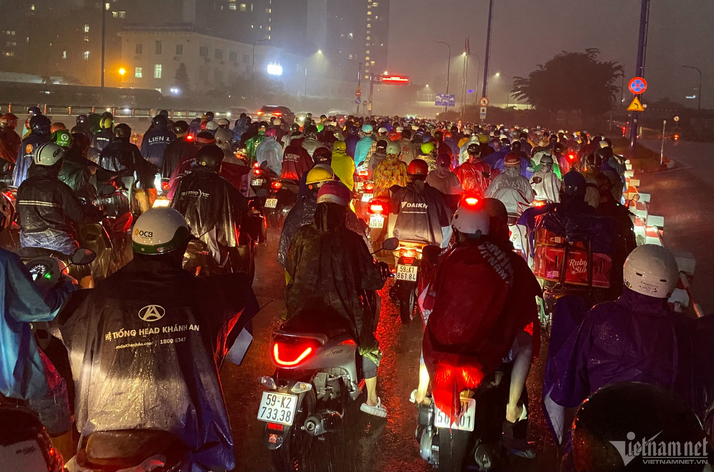 Ai cũng nôn nóng để về nhà sau ngày làm việc, nhưng phía trước hàng nghìn xe đang mắc kẹt không lối thoát dưới cơn mưa lớn khiến nhiều người mệt bơ phờ.