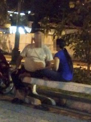 Từ câu chuyện của bà Ba, chúng tôi để ý thấy ông S khua chân múa tay túi bụi khi tâm sự với cô T. Chốc chốc, ông lại ho sùng sục rồi vớ chai nước treo sẵn trên xe tu ừng ực. Khoảng một tiếng sau, thấy cô T leo lên xe của ông S, vòng tay cô ôm chặt lấy bụng ông. Bà Ba mách rằng, đã đến giờ cấm, ông S phải chở cô T về nhà. Họ đang yêu nhau lén lút, chưa dám công khai.