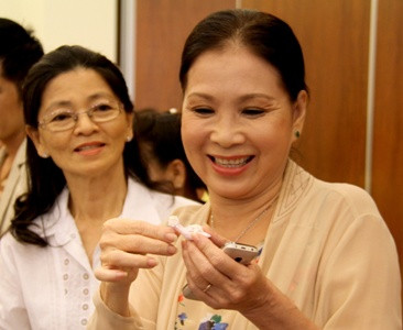 | Với vốn kiến thức tiếp thu từ nước ngoài, Lý Kha Trân (áo đỏ), con gái ông chủ hãng sứ Minh Long 1, là người góp phần quan trọng trọng việc sáng tạo những sản phảm hoa sứ nghệ thuật. |