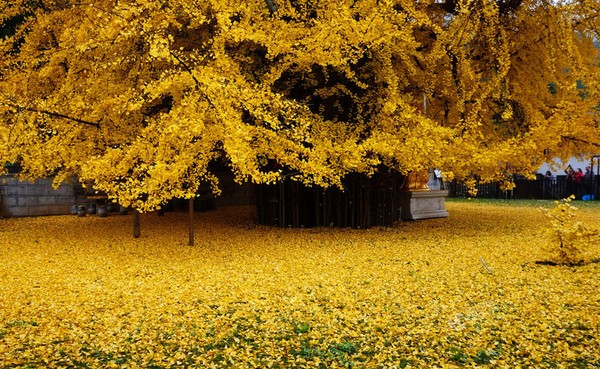 Sắc vàng óng của cây ngân hạnh cổ sáng rực cả một góc trời Tây An