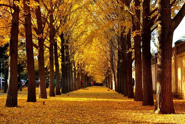Ngoài ra, những cây ngân hạnh con cũng được trồng thành 2 hàng trên nhiều tuyến phố đi bộ tại Trung Quốc. Hàng cây "đẹp như tranh" được các bạn trẻ Trung Hoa Đại Lục mến mộ