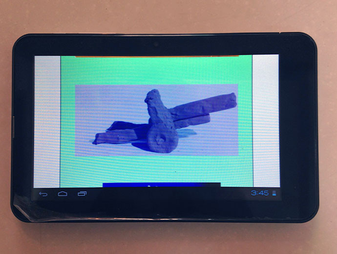 Màn hình mặc định của máy tính bảng là hình ảnh thiết bị này cùng một bàn phím, đi kèm với tên lửa Unha đưa vệ tinh lên quỹ đạo hồi đầu năm nay.