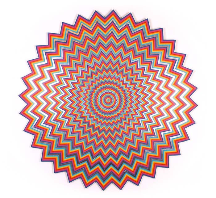 Sáng tạo của cô kết hợp nhiều loại vật liệu để tạo ra các hiệu ứng quang học thôi miên, đánh lừa thị giác của con người.