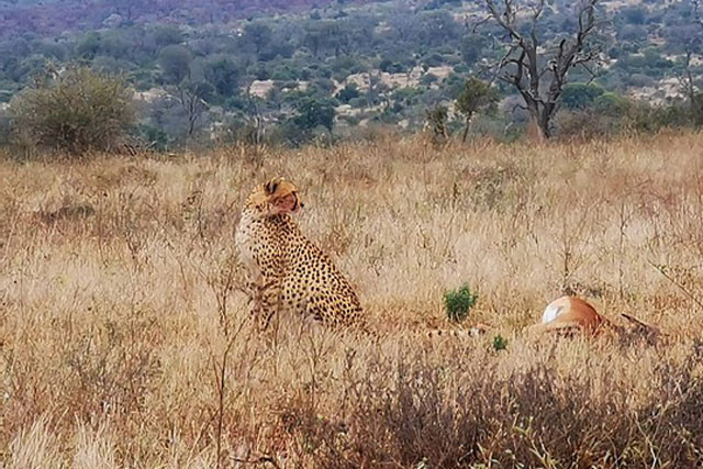 Theo đó, trong lúc đang ngắm nhìn động vật hoang dã ở Vườn quốc gia Kruger, anh Shakera Kaloo đã trông thấy chú báo săn vừa giết chết một con linh dương Impala. Sau đó, con báo liền nghỉ ngơi lấy lại sức trước khi ăn thịt con mồi.