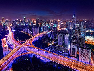 Giao lộ Diên An tại Thượng Hải,Trung Quốc uốn khúc như mê cung.