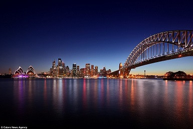 Những ánh đèn sống động phản chiếu nét đặt trưng của thành phố Sydney, Úc.