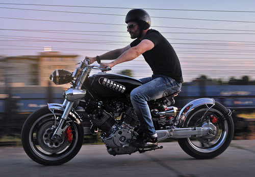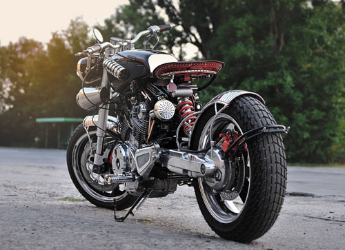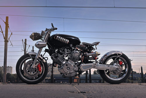 Nguyên mẫu là chiếc Yamaha Virago 750 phân khối. Tác giả sử dụng nhiều chi tiết bằng kim loại thô như đồng, nhôm và thép không gỉ để tạo cảm giác đó là chiếc xe cũ nhưng mang phong cách hiện đại.