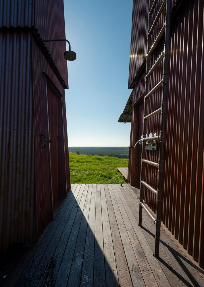 | | Sở hữu một ngôi nhà nhỏ giữa ngọn đồi xanh mướt, tách biệt với cuộc sống phố thị ồn ào có phải niềm mong ước của nhiều người? thấu hiểu được điều trên, thợ thủ công bậc thầy Jeffery Broadfield và nhóm xây dựng từ Smith và Primmer đã sáng tạo nên một ngôi nhà tái chế hình rô bốt giữa cánh đồng Berry (Úc). |  | | Ngôi nhà có mặt bằng rộng 9m2, cho phép hai người cùng ở mà vẫn có không gian riêng của mỗi cá nhân. Cấu trúc ngôi nhà được làm chủ yếu bằng vỏ sắt tái chế lấy từ một chiếc cầu cảng không sử dụng, vật liệu này nhằm để chống lại ánh nắng thiêu đốt từ mặt trời ở nước Úc. |  | | Tầng trệt là nơi nấu nướng, cất giữ đồ đạc và có hệ thống sưởi cho ngôi nhà. Phòng ngủ nằm phía trên và lên xuống bằng thang. Phòng tắm là một boong phía sau nhà với bể chứa nước mưa riêng và nhà vệ sinh có hệ thống ủ. |  | | Nước được thu thập trên các mái nhà rồi được dẫn vào bể chứa phía trên phòng tắm, cung cấp nước cho vòi hoa sen và nhà bếp. Bếp đun bằng củi trong nồi đốt nóng cabin vào ban đêm. Các tấm pin mặt trời trên mái nhà cung cấp năng lượng để chiếu sáng. Ngoài ra, căn nhà còn có một chiếc thang dẫn lên mái nhà và đóng vai trò như một dây thoát sét. |  | | Nếu nhìn xa, ngôi nhà trông giống như một con rô bốt gỗ giữa cánh đồng xanh mướt, nó hiện thực hóa ước muốn về nơi nghỉ dưỡng yên bình mà vẫn đầy đủ tiện nghi cho con người hiện đại. | |