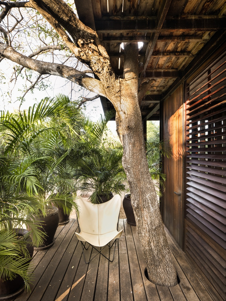 | Các phòng được nâng cao ngang tán cây, được che chắn bằng mái bê tông phẳng, cách nhiệt lớp ngoài, giúp các phòng có bóng mát suốt cả ngày. |
