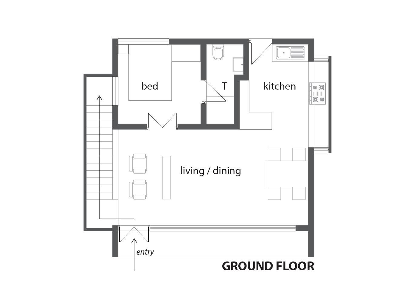 | Ngôi nhà này vốn dĩ là một dự án nhà ở cao cấp, tuy nhiên có nhiều vấn đề xảy ra nên dự án đã bị trì hoãn và bỏ hoang. Do đó, ngôi nhà được chỉnh sửa để trở thành tổ ấm cho một gia đình có thu nhập thấp. |