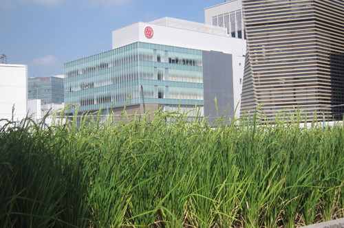 Những người làm việc gần tòa nhà Hakutsuru (Kobe, Nhật) có thể thấy ruộng lúa 70 m2 mơn mởn khi nhìn qua cửa sổ.