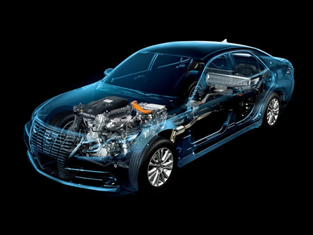 Tiếp đến là hệ thống hybrid, kết hợp giữa động cơ Atkinson 4 xi-lanh, dung tích 2,5 lít và một mô tơ điện sản sinh công suất hỗn hợp tối đa 176 mã lực, mô men xoắn cực đại 221 Nm, chỉ ứng dụng trên Crown Royal và Athlete dẫn động cầu sau.