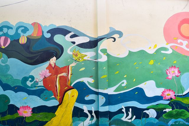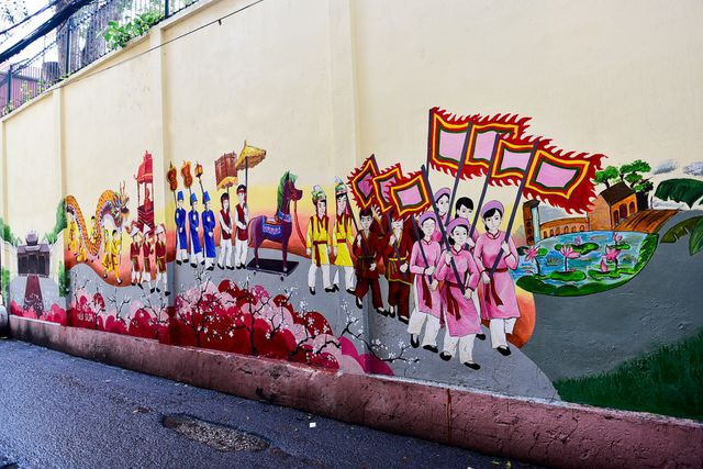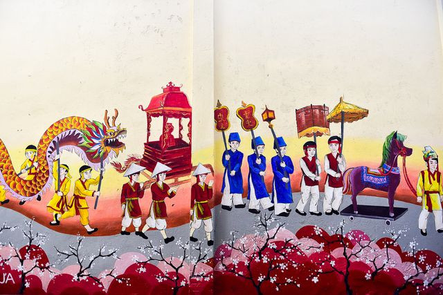 Những bức bích họa vô cùng ý nghĩa đã phác họa lại lịch sử phát triển của một làng cổ ven đô xen kẽ cuộc sống hiện đại ngày nay.