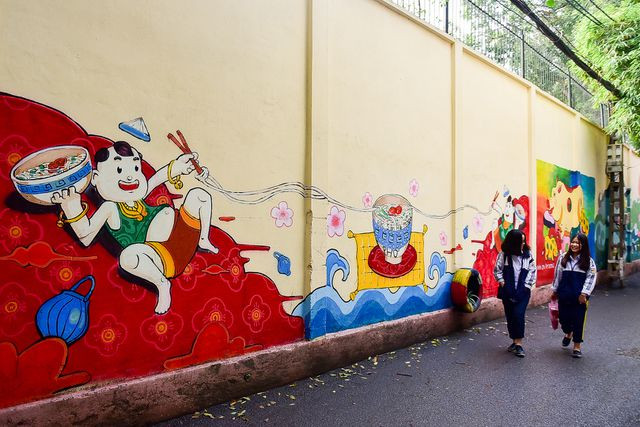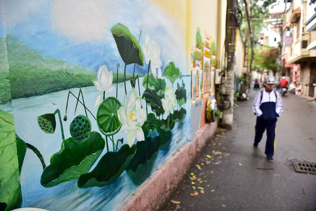 Những bức tranh bích họa tuyệt đẹp đã khiến cho không gian con ngõ nhỏ trở nên đầy màu sắc và sinh động hơn.