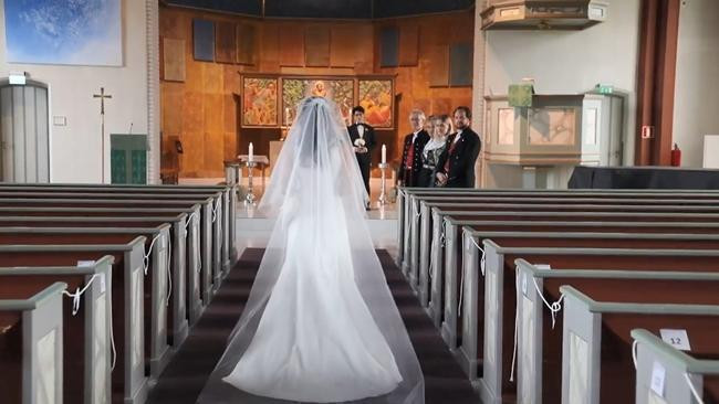 Hôn lễ nhỏ của Ngô Thanh Vân sau đó đã diễn ở một nhà thờ nhỏ, với sự tham gia của gia đình ông Trygve Andersen. Cô mặc váy cưới được thiết kế giản dị, đầu đội khăn voan và cầm di ảnh của cha nuôi, từ từ tiến về phía chú rể Huy Trần.