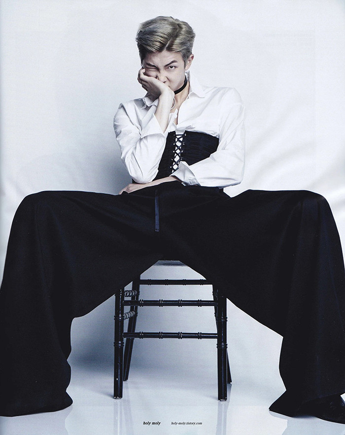 Lại là RM với một bộ trang phục mặc nhà vô cùng nữ tính, nếu bỏ qua mặt RM, nhìn có giống đôi bạn nữ đứng cạnh nhau không cơ chứ!
