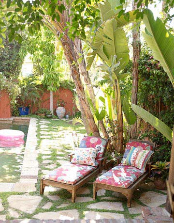 Nằm dưới những tán cây leo rậm rạp và được nối với 'thế giới bên ngoài' bằng một lối đi lát đá phiến che khuất dưới những bụi cỏ xanh, khu 'vườn địa đàng' này là một nơi lý tưởng để bạn thả mình vào một thế giới riêng, tránh xa những 'cát bụi trần gian'.