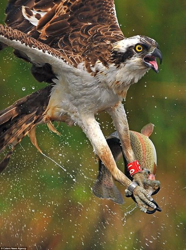 Với kỹ năng săn mồi nhạy bén, chim ưng biển nhanh chóng tóm gọn được một con cá lớn.