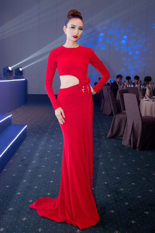 Ngọc Diễm thu hút ánh nhìn trong bộ đầm đỏ ôm dáng khi là người dẫn chương trình trong sự kiện tối qua.