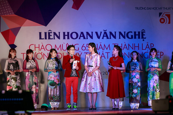 Sự xuất hiện của Ngọc Hân trên sân khấu tối qua đã nhận được sự chú ý của đông đảo sinh viên Đại học Mỹ thuật Công nghiệp.